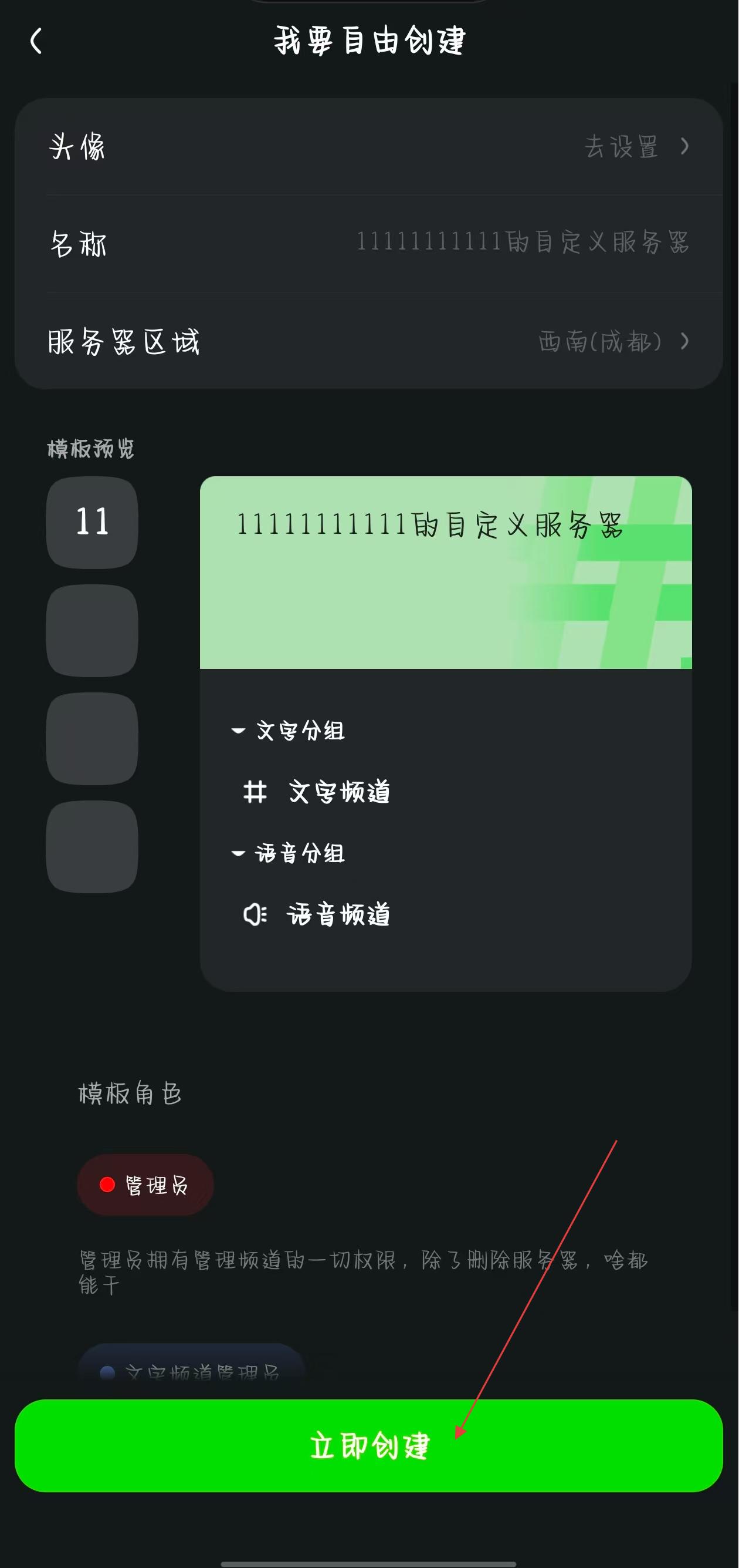 3、進(jìn)入創(chuàng)建設(shè)置頁面,上傳服務(wù)器頭像,填寫服務(wù)器名稱,并選擇服務(wù)器所在區(qū)域。