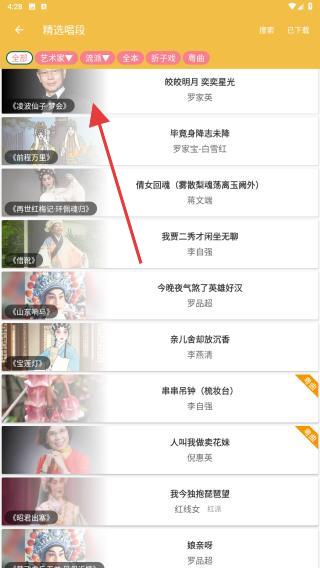 2、在精選唱段列表中,瀏覽并點擊想要播放的唱段條目,進入該唱段的詳情頁面。