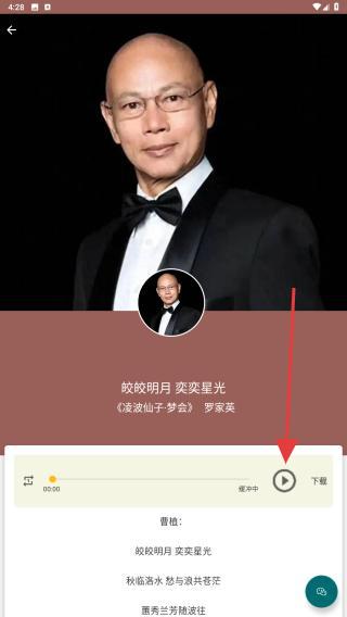 3、在唱段詳情頁面中,找到三角形播放按鈕,點擊即可播放唱段視頻。