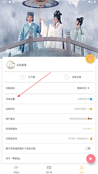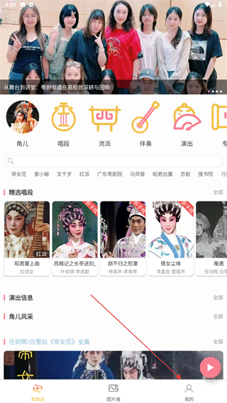 1、打開粵劇迷APP,進入時點擊底部我的按鈕。