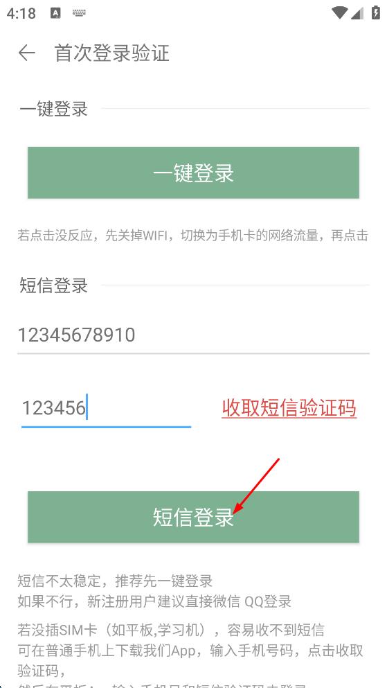 4、輸入完成后,點擊綠色“短信登錄”按鈕完成登錄。