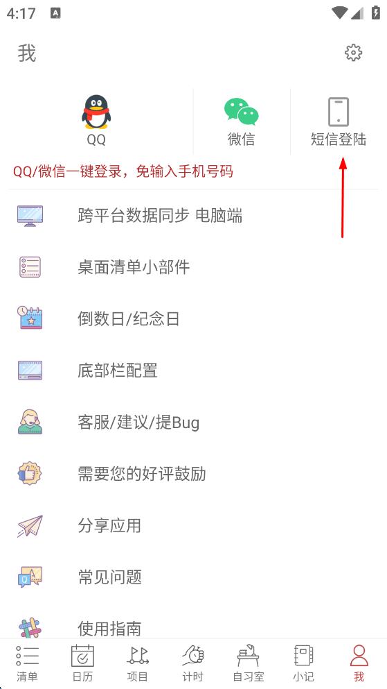 2、在“我”的頁面,點擊“短信登錄”選項。