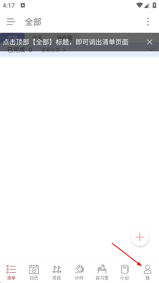 1、打開清單自習(xí)室的應(yīng)用,在首頁底部點擊我的按鈕。