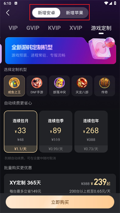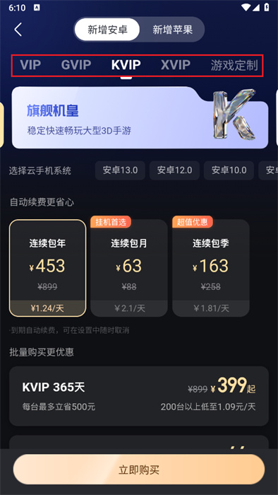 3、版本選擇好之后,則需要進(jìn)行vip種類的選擇,點(diǎn)擊對(duì)應(yīng)的vip即可;