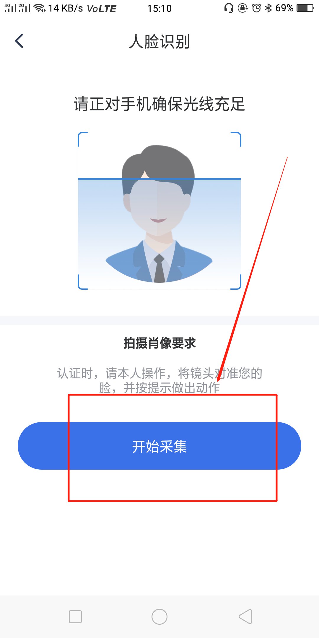 4.接著點(diǎn)擊“開(kāi)始采集”并按照提示進(jìn)行人臉識(shí)別;識(shí)別完成后即可認(rèn)證成功并登錄。