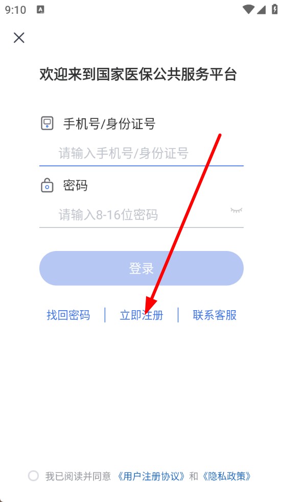 2、在登錄頁(yè)面,點(diǎn)擊「立即注冊(cè)」選項(xiàng),勾選用戶協(xié)議與隱私政策后,跳轉(zhuǎn)至注冊(cè)信息填寫(xiě)頁(yè)面。
