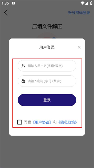 3、在登錄頁面,點擊賬號密碼登錄,輸入用戶名和密碼。