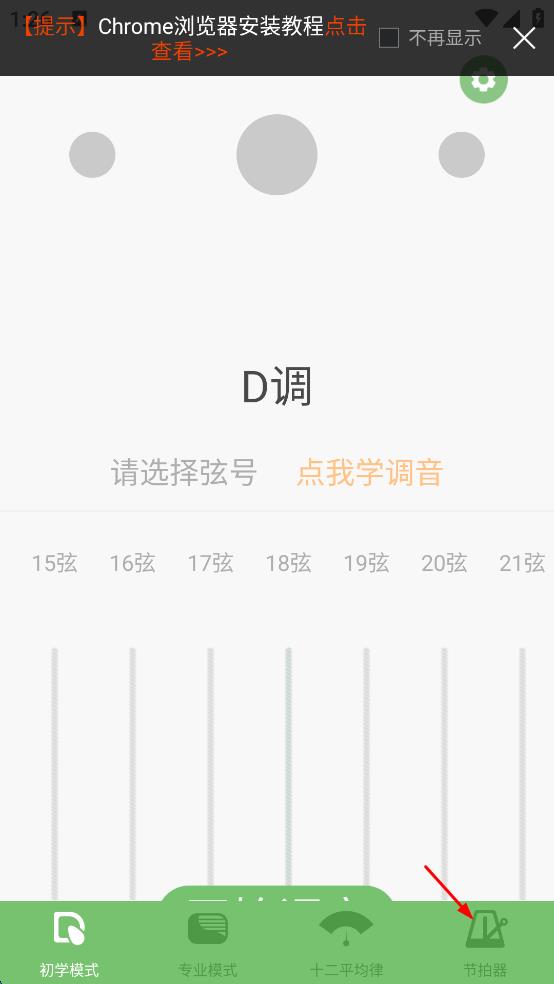 3、完成弦號選擇后,點擊頁面下方的節(jié)拍器選項,進入到節(jié)拍器設置頁面。