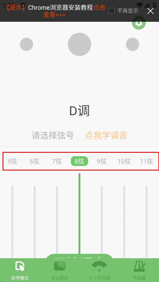 2、在APP主界面,能看到D調等相關標識,還有弦號選擇區(qū)域,可根據需求選擇對應的弦號,比如選擇8弦。