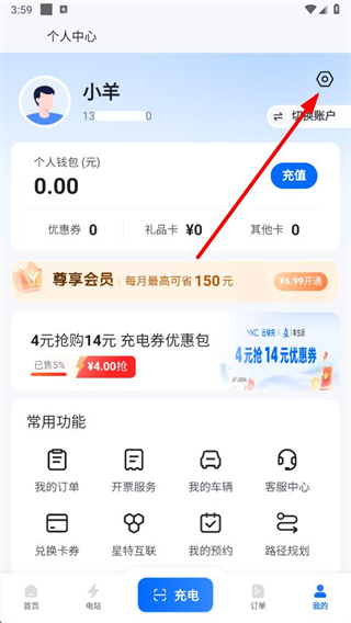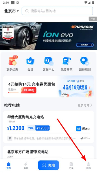 1、在云快充app首頁點(diǎn)擊我的選項(xiàng),進(jìn)入個(gè)人中心頁面。