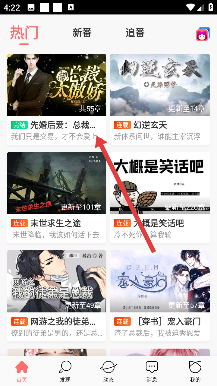 1、打開(kāi)迷說(shuō)APP,進(jìn)入首頁(yè)的熱門(mén)頁(yè)面,瀏覽選擇感興趣的小說(shuō),像先婚后愛(ài):總裁太傲嬌。