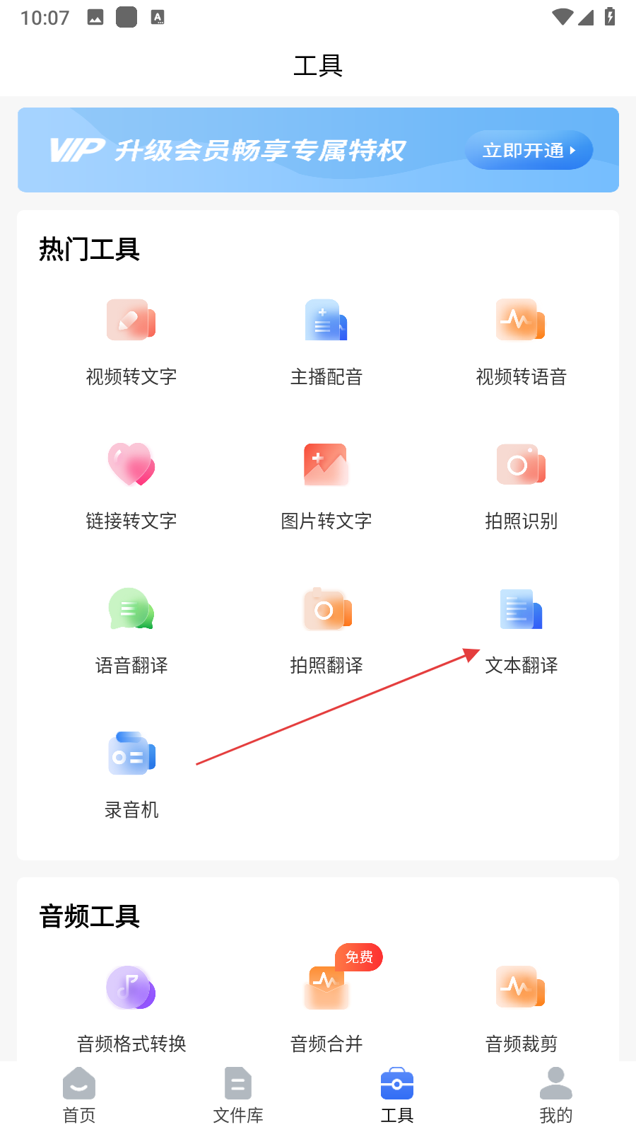 2、在工具頁面的熱門工具區(qū)域,找到并點(diǎn)擊文本翻譯選項(xiàng),進(jìn)入文本翻譯界面。