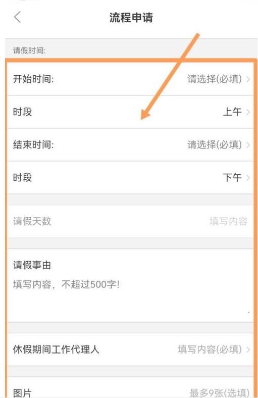 4.填寫(xiě)請(qǐng)假時(shí)間,天數(shù),事由登內(nèi)容,點(diǎn)擊提交即可,如下圖所示: