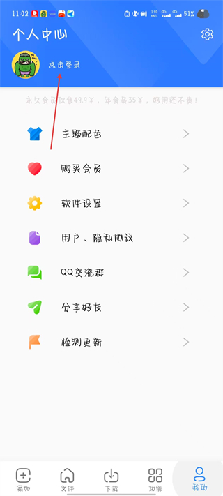 2、在個(gè)人中心頁面,點(diǎn)擊點(diǎn)擊登錄選項(xiàng)。