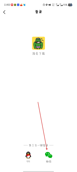 3、在登錄頁面,選擇QQ或微信進(jìn)行第三方一鍵登錄。