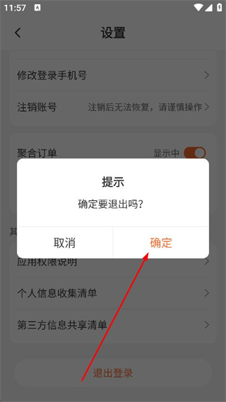4、在彈出的提示框中,點(diǎn)擊確定,即可退出賬號。