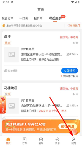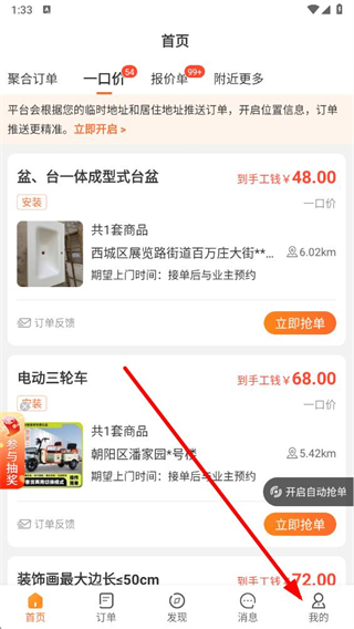 【實(shí)時接單】:訂單列表,一目了然,師傅可實(shí)時查看本地派單動態(tài),接單更便捷;