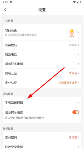 3、在設(shè)置界面點(diǎn)擊手機(jī)系統(tǒng)通知選項,進(jìn)入通知設(shè)置頁面。