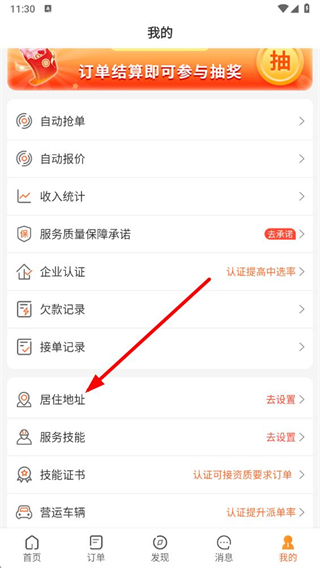 2、在個人頁面中,點(diǎn)擊居住地址選項。