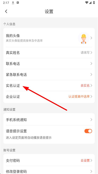 2、在設(shè)置界面,點(diǎn)擊實(shí)名認(rèn)證選項,進(jìn)入實(shí)名認(rèn)證頁面。