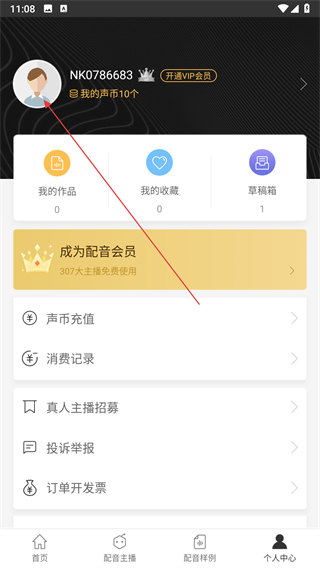 1、打開訊飛配音應(yīng)用,點擊頭像。