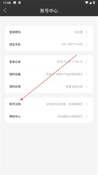 3、進(jìn)入賬戶中心,點擊賬戶注銷。