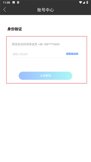 6、獲取驗證碼,點擊立即刪除即可完成。