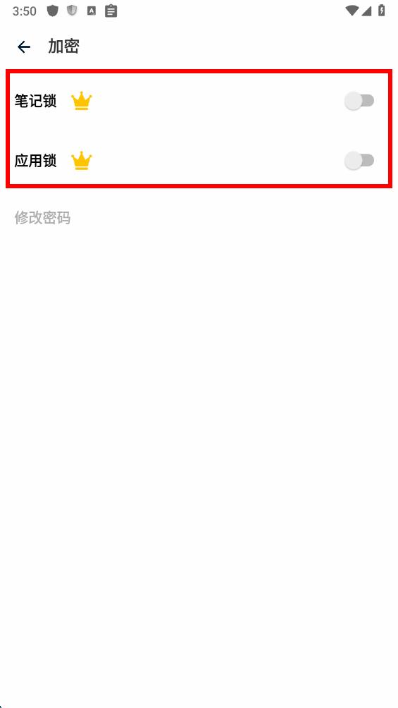4、在加密設置界面,找到筆記鎖和應用鎖選項,點擊開啟相應的開關,根據(jù)提示完成密碼設置等操作,即可為筆記和應用添加密碼保護。