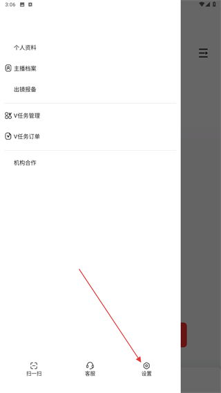 2、在左側(cè)彈出的菜單欄中,點(diǎn)擊下方設(shè)置的按鈕。