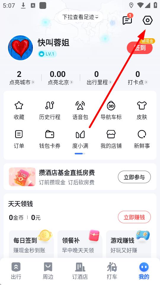 2、在個人頁面中,點(diǎn)擊右上角的設(shè)置圖標(biāo),進(jìn)入設(shè)置界面。