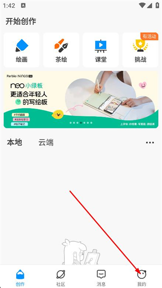 1、打開熊貓繪畫app,點擊底部導航欄的我的選項。