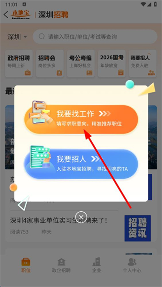 2、在招聘頁(yè)面中,點(diǎn)擊我要找工作選項(xiàng)。
