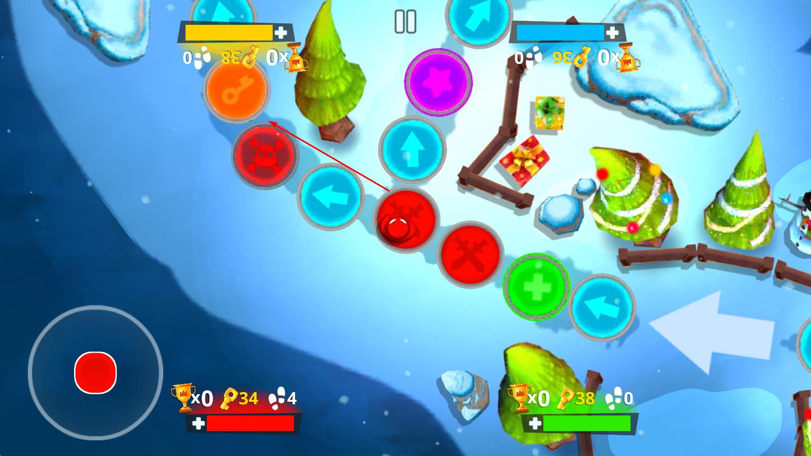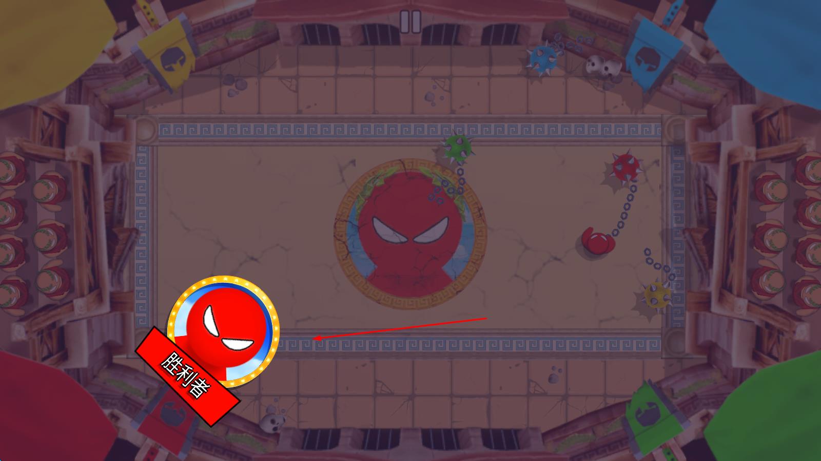 3、在競技場場景,操控紅色角色,利用場景元素,讓角色抵達勝利區(qū)域,獲取“勝利者”標識。
