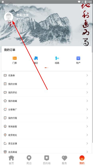 2、在我的頁面,點(diǎn)擊左上角登錄/注冊(cè)按鈕。