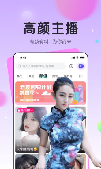 龍貓交友軟件在線互動(dòng)交友,讓社交更加輕松的軟件,在app中你可以看到眾多不同風(fēng)格的主播,視頻語(yǔ)音互動(dòng)交流更及時(shí),不管你是想成為主播還是觀眾,在這里都能滿足你的使用需求。