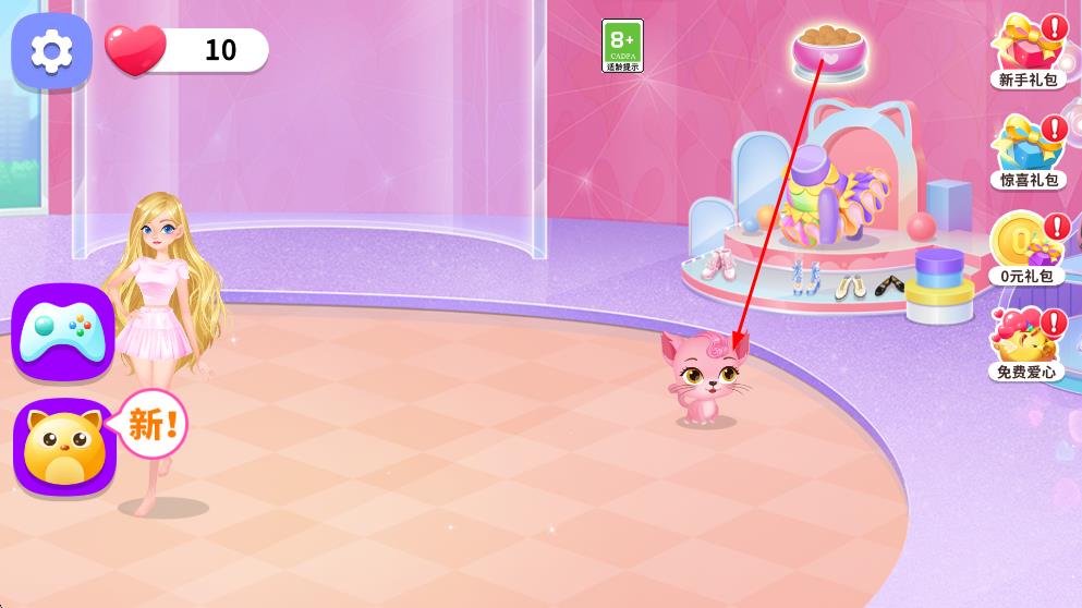 -體驗屏幕交互,手機碰觸手機屏幕的話即可對正在裝扮的寵物進行移動、方向切換