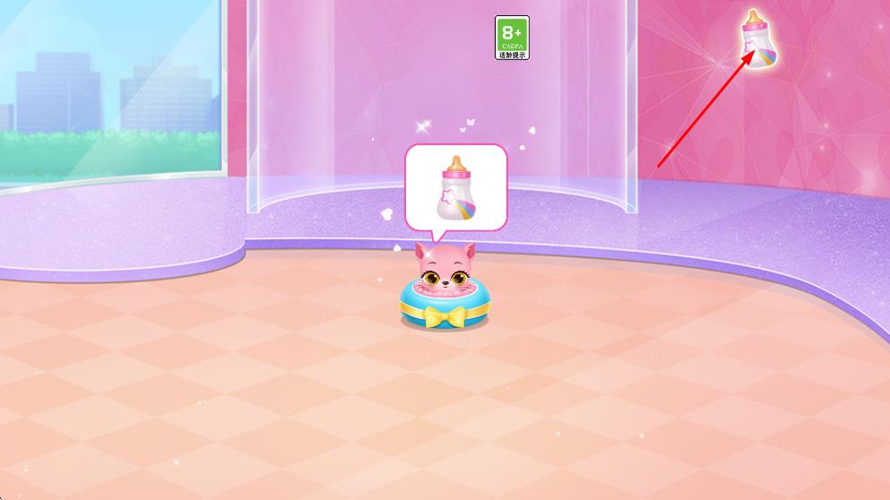 2、萌寵孵化后,點擊界面中的奶瓶物品,完成對萌寵的喂養(yǎng)操作。