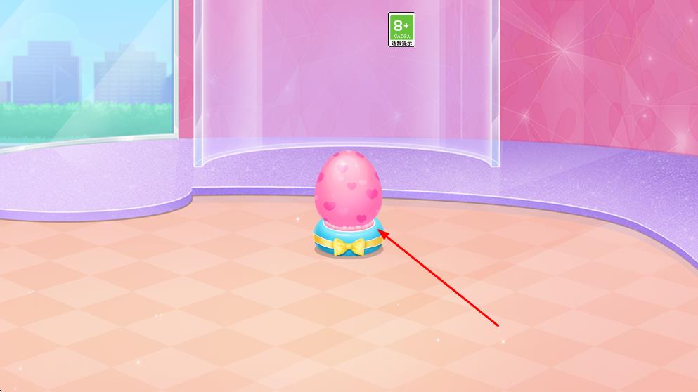 1、進入游戲界面,點擊場景中的粉色蛋形物品,觸發(fā)孵化萌寵的流程。
