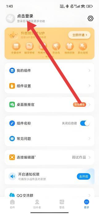 1、在應(yīng)用主界面底部,點(diǎn)擊右下角更多按鈕,進(jìn)入包含登錄入口、組件管理的個(gè)人頁(yè)面。