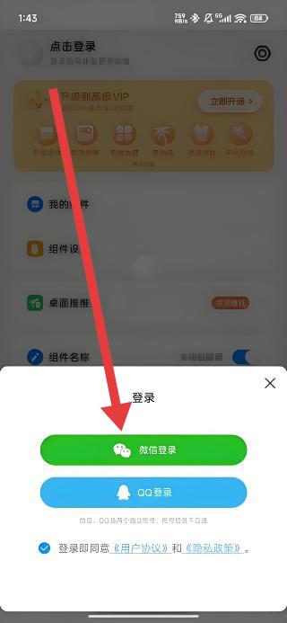 3、在登錄彈窗中,可以按照箭頭指示點(diǎn)擊綠色微信登錄按鈕,按提示完成微信授權(quán),實(shí)現(xiàn)賬號(hào)登錄。