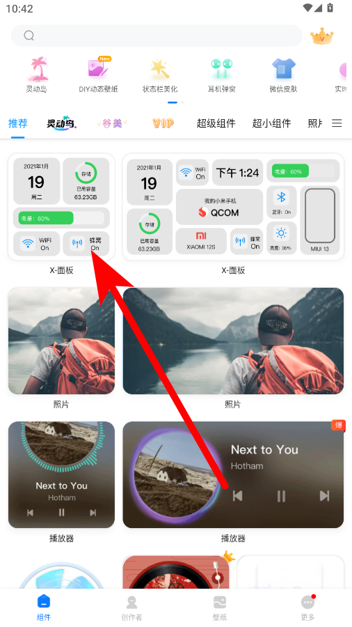 1、打開(kāi)萬(wàn)能小組件App,在推薦界面找到想要添加的X-面板組件,點(diǎn)擊進(jìn)入。