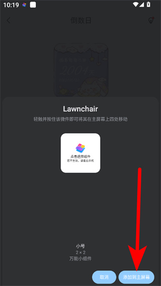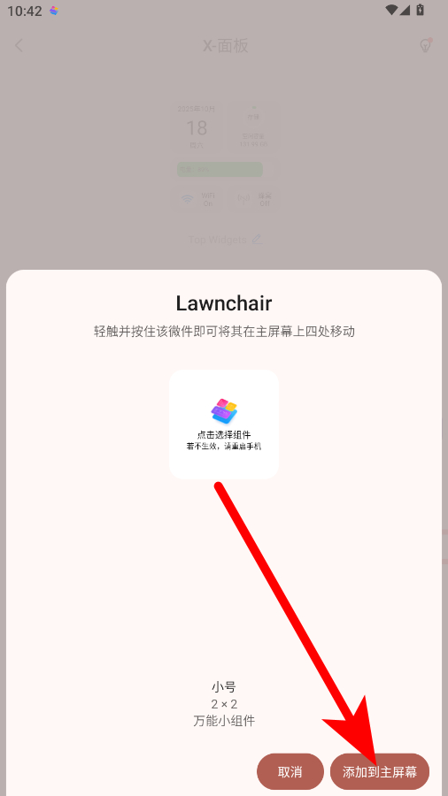 4、在彈出的添加選項(xiàng)中,點(diǎn)擊添加到主屏幕按鈕,即可將組件添加到桌面。