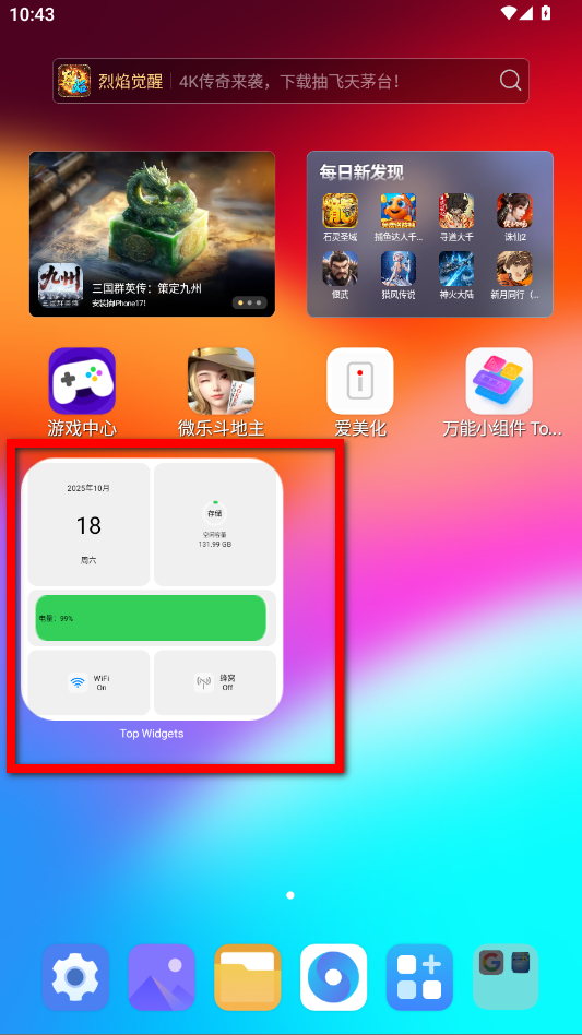 4、此時(shí),即可在手機(jī)桌面上看到已成功添加的萬(wàn)能小組件。
