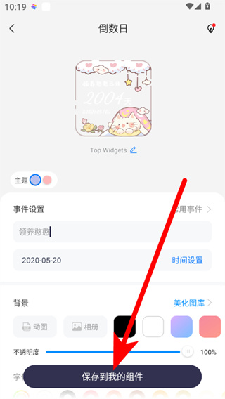 3、在組件設(shè)置界面,完成事件、背景等設(shè)置后,點(diǎn)擊保存到我的組件按鈕。