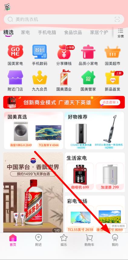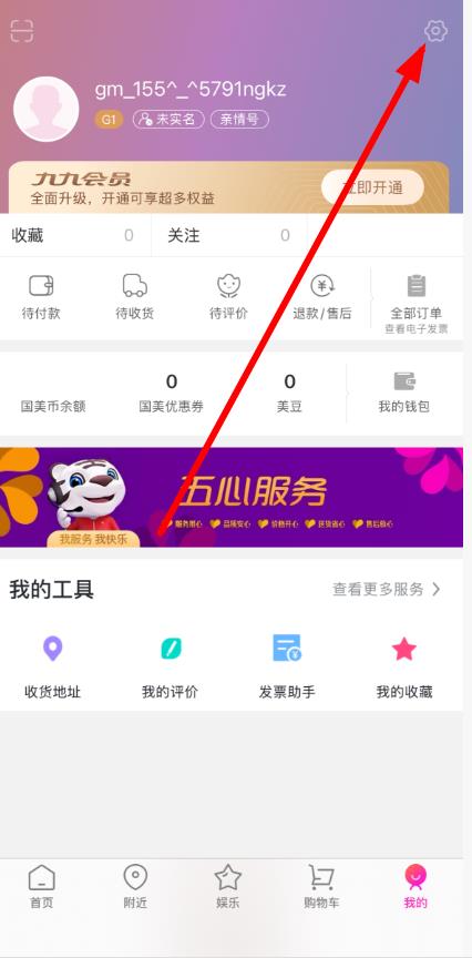 1、打開國美APP,點擊底部導航欄中的我的選項,進入個人中心頁面。