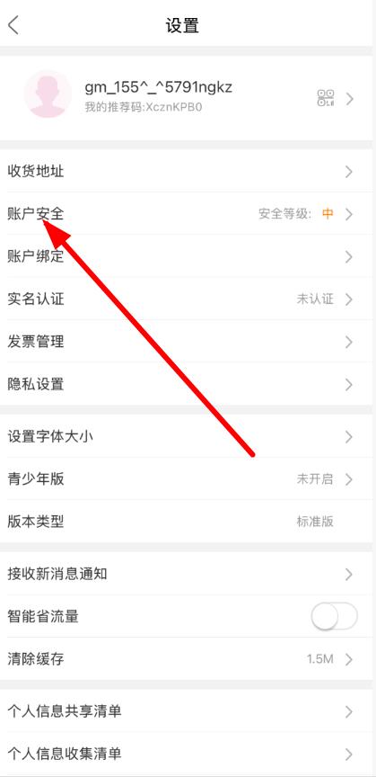 3、在設置界面里,找到并點擊賬戶安全選項。