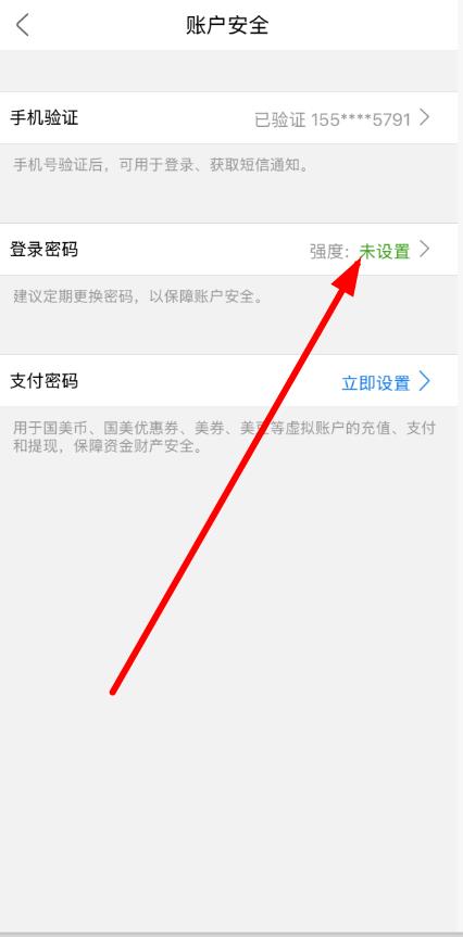 4、進入賬戶安全頁面后,點擊登錄密碼右側(cè)的未設置箭頭標識,按后續(xù)提示完成登錄密碼的設置操作。