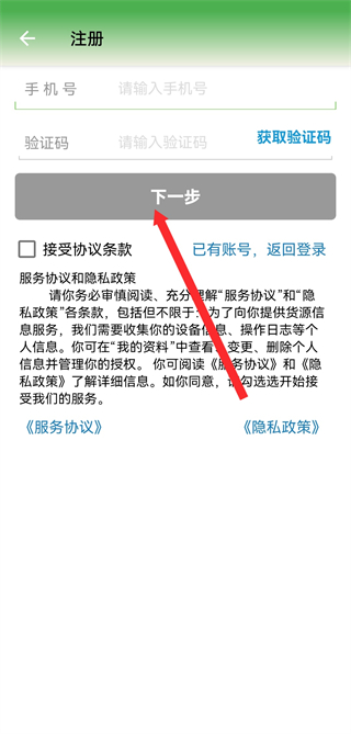 4、輸入手機號、驗證碼后,點擊下一步,后續(xù)根據(jù)提示完成注冊。