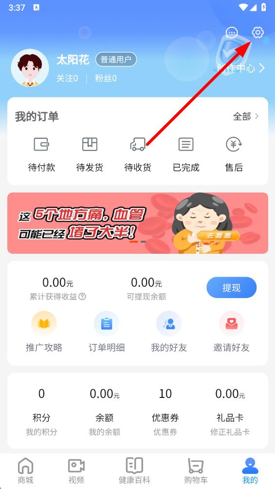 2、在個人界面中,點擊右上角的設(shè)置圖標,進入設(shè)置頁面。