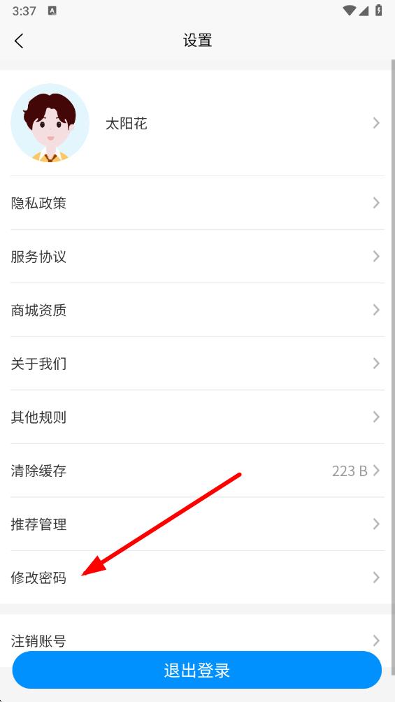 3、在設(shè)置頁面里,找到并點擊修改密碼選項。